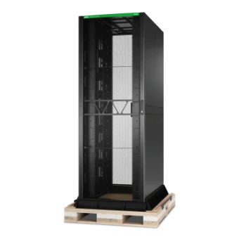 Het APC NetShelter SX geavanceerde high-star Rack is op maat gemaakt voor AI infrastructuur met hoge dichtheid, inclusief vloeistofkoelcomponenten. Het biedt maximale ruimte met 48U hoogte, 800mm breedte en 1295mm diepte en biedt gegarandeerde compatibiliteit met alle EIA-310-E-conforme IT-apparatuur. Dit rack is ISTA-3E getest en ontworpen om een kast met maximaal 1587 kg (3500 lbs) geïnstalleerde IT apparatuur veilig te laden, te vervoeren, te ontladen en te implementeren. Het biedt een hoger gewicht laadvermogen, waardoor de inkomsten binnen een beperkt bereik toenemen, met een statische belasting van 4250lb en een dynamische belasting van 3500lb Dit biedt een hogere veiligheid en een lager risico op uitvaltijd met maximaal 80% luchtperforatie en flexibiliteit om te kiezen uit lucht- of vloeistofkoeling. Gebouwd met volledig stalen constructie, duurt het jaren en kan worden gebruikt voor verschillende toepassingen. Het is ontworpen om stroombelastingen van 70kW en uitbreidbaar tot 1