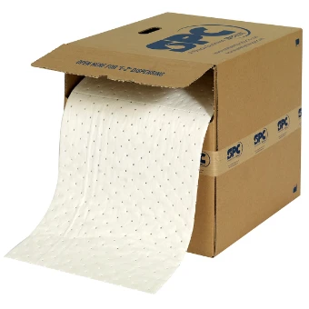 SXT315-P-E is een 3-laagse, witte, gebonden en geperforeerde olieabsorberende rol met medium gewicht die zowel olie als vloeistoffen op basis van petroleum absorbeert. Waterafstotend. Pluisvrij. De spinvlies buitenlagen bezorgen het product een langere levensduur en een grotere scheurvastheid. Dankzij de niet-pluizende boven- en onderlaag hebt u geen last van loskomende vezels en is het product scheurvast. Ideaal voor plaatsen die matig worden belopen. Geperforeerd voor extra gebruiksgemak en minder afval. Bestemd voor toepassingen die een duurzaam, niet-pluizend en scheurvast absorptiemiddel vereisen.