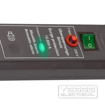 - Steckerleiste mit akustischem Warnsignal bei ausfallendem Überspannungsschutz
