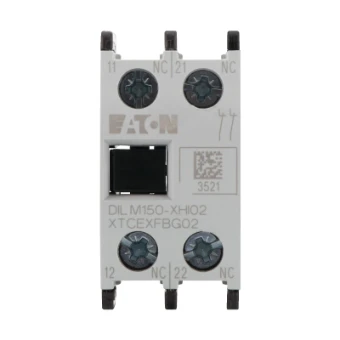 Hilfsschalterbaustein, mit zwangsgeführten Kontakten, Funktion: für Standardanwendungen, 2-polig, Anschlusstechnik: Schraubklemmen, Bemessungsbetriebsstrom AC-15 220 V 230 V 240 V: Ie= 6 A, Bemessungsbetriebsstrom AC-15 380 V 400 V 415 V: Ie= 4 A, Kontakte Ö = Öffner: 2 Ö, Montagetyp: Frontbefestigung, verwendbar für: DILM40…, DILM50…, DILM65…, DILM72…, DILM80…, DILM95…, DILM115…, DILM150…, DILM170…, DILMP63…, DILMP80…, DILMP125…, DILMP160…, DILMP200…, DILMF40…, DILMF50…, DILMF65…, DILMF80…, DILMF95…, DILMF115…, DILMF150…, Typ: Frontale Hilfsschalterbestückung