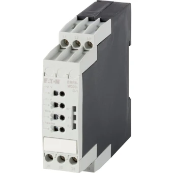 Phasenwächter, Sortiment: Mess- und Überwachungsrelais EMR, ansprech- und rückfallverzögert, Stromversorgung aus dem Messkreis, Einschaltverz./Ausschaltverz.: keine = 0 oder einstellbar zwischen 0,1 - 30 s, Unsymmetrie-Schwellenwerte einstellbar 2 - 25 % vom Mittelwert der Phasenspannungen, Dreiphasennetze, Überwachungsspannung je Phase: UN= 160 - 300 V AC, 50/60 Hz V AC, Überwachung von: Phasenfolge (deaktivierbar), Phasenausfall, Überspannung, Unterspannung, Versorgungsspannung: 160 - 300 V AC, 50/60 Hz, Einbaulage: beliebig, Befestigung: Schnappbefestigung, Hutschiene IEC/EN 60715, Breite: 22,5 mm, Normen und Bestimmungen: IEC, UL, CSA, CCC, GL