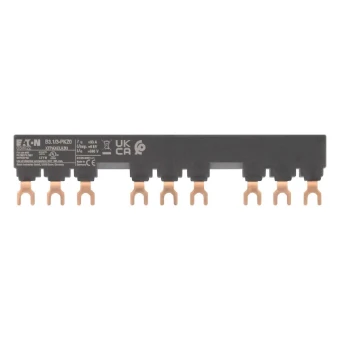 Drehstromschienenblock, 3-polig für Einspeisungseinheit von 3 PKZM0-... mit Hilfsschalter oder Auslöseanzeige auf der rechten Seite, Länge 153mm Schutz gegen direkten Kontakt., Ue = 690 V, Iu = 63 A