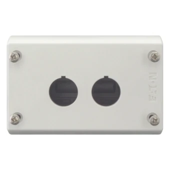 Aufbaugehäuse, Gehäuse: Kunststoff, mit Edelstahlschrauben, Einbaustellen: 2, Leitungseinführung: rückseitig: 2 x M20, oben: 1 x M20, seitlich: 2 x M20/M25 (je Seite 1 x), Schutzart: IP66, IP67, IP69K, Farbe RAL-Wert: RAL 7035, Farbe: Gehäuseunterteil anthrazit, Anbindung an SmartWire-DT: nein, verwendbar für: (Leucht)-Drucktasten, (Leucht-)Wahltasten, Schlüsseltasten, Leuchtmelder, NOT-HALT-/NOT-AUS-Tasten mit gelbem Schild