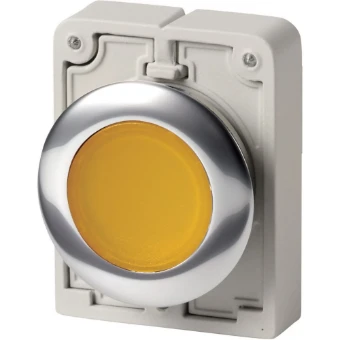 Leuchtdrucktaste, Sortiment: RMQ-Titan, Einzelgerät, Bauform: flach, tastend, Tastenplatte: gelb, Tastenplatte unbeschriftet, Schutzart: IP66, IP67, IP69K, Frontring Metall, Anbindung an SmartWire-DT: ja, mit RMQ-SWD-Anschaltungen, Frontabmessung: Ø 36 mm, Normen und Bestimmungen: IEC/EN 60947, VDE 0660