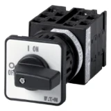 Handgriff, Grundfunktion: Bausätze, Funktion: Hauptschalterbausätze, n, mit Vorhängeschlosssperre, zum Sperren der 0-Stellung, abschließbar durch maximal 3 Bügelschlösser, verwendbar für: T0-.../E, .../Z, .../I1, T3-.../E, .../Z, .../I2, P1-…/E, …/Z, …/I2, verwendbar für: T0 bis max. 4 Baueinheiten, T3 bis max. 6 Baueinheiten, rot/gelb, Ausführung mit rotem Drehgriff und gelbem Sperrkranz, NOT-AUS/NOT-HALT: als NOT-AUS-/NOT-HALT-Funktion, Schaltwinkel: 90 °