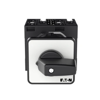 Umschalter, Sortiment: Steuerschalter, Typkenner: T3, mit schwarzem Knebel und Frontschild, Kontakte: 6, Schutzart: Front IP65, Bauform: Zentraleinbau, Schaltwinkel: 60 °, Schaltverhalten: rastend, mit 0-Stellung, Frontschild: 0-1-2, Bemessungsbetriebsleistung AC-23A, 50 - 60 Hz 400 V: P = 15 kW, Bemessungsdauerstrom: Iu = 32 A, 3 Baueinheit(en), Normen und Bestimmungen: IEC/EN 60947, VDE 0660, IEC/EN 60204, CSA, UL, Lasttrennschalter nach IEC/EN 60947-3