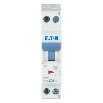 Leitungsschutzschalter, PLN6, 1-polig + N, Auslösecharakteristik: C, Bemessungsstrom Ein: 20 A, Bemessungsschaltvermögen nach IEC/EN 60898-1: 6 kA, Schaltgeräte für den Wohnungsbereich und kommerzielle Anwendungen