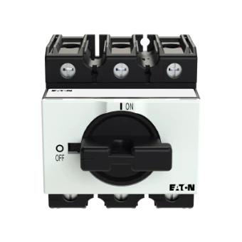 EIN-AUS-Schalter, Sortiment: EIN-AUS-Schalter, Typkenner: P3, mit schwarzem Knebel und Frontschild, Information zum Lieferumfang: Hilfskontakt oder Neutralleiter kundenseitig montiert., 3-polig, Verriegelungsvorrichtung: In der Position 0 (Aus) verriegelbar, Schutzart: Front IP30, Bauform: Montage elektrischer Verteiler, Bemessungsbetriebsleistung AC-23A, 50 - 60 Hz 400 V: P = 30 kW, Bemessungsdauerstrom: Iu = 63 A, Normen und Bestimmungen: IEC/EN 60947, VDE 0660, IEC/EN 60204, CSA, UL, Lasttrennschalter nach IEC/EN 60947-3