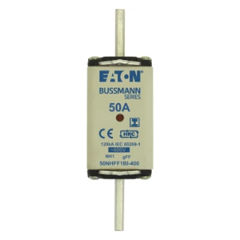 Eaton Bussmann Low Voltage NH EATON 50Amp 400V AC GFF 1 NH FUSE Zekering, laagspanning, 50 A, AC 400 V, NH1, gFF, IEC, dubbele melder, geïsoleerde grepen