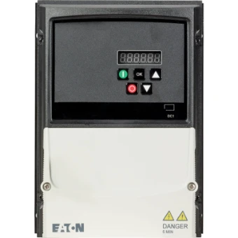 Frequenzumrichter, Typkenner (z. B. DIL): DC1, Bemessungsbetriebsspannung: Ue = 230 V AC, 1-phasig, 240 V AC, 1-phasig, Ausgangsspannung bei Ue: U2 = 230 V AC, 1-phasig, 240 V AC, 1-phasig, Netzspannung (50/60Hz): ULN = 200 (-10%) - 240 (+10%) V, Bemessungsbetriebsstrom bei 150% Überlast: Ie = 10,5 A, Hinweis: Bemessungsbetriebsstrom bei einer Schalthäufigkeit von 6 kHz und einer Umgebungstemperatur von +40 °C, Hinweis: Überlastzyklus für 60 s alle 600 s, Zugeordnete Bemessungsbetriebsleistung Hinweis: Für Wechselstrommotoren mit interner und externer Belüftung mit 50/60 Hz ohne zusätzlichen Startkondensator, Überlastzyklus für 60 s alle 600 s
