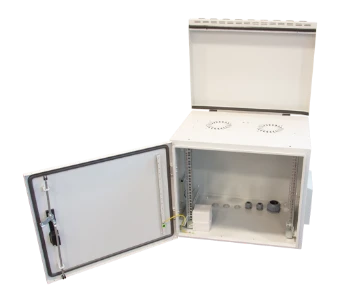 Deze IP55 wandkast van Grayle met 12U (600×600 mm) is ontworpen voor veilige buiteninstallaties. Volledig van gepoedercoat staal (RAL7035), afsluitbaar met profielcilinder, voorzien van 4 verzinkte 19" rails, aarding en kabelinvoer. Dak is voorbereid voor ventilatoren. Ideaal voor industriële netwerken, cameraopstellingen of buiteninfrastructuur.