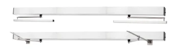 Deze geluidsarme dubbele draaideurautomaat is eenuniversele automaat geschikt voor binnen- en buitendeurenin trekkende uitvoering en zelfsluitend bij spanningsuitval.De deurautomaat kan door diverse impulsgevers wordenbediend, variërend van infrarood en radiografisch totdrukknoppen. Ook elektrische vergrendelingen kunnenvanuit de automaat worden aangestuurd, met instelbaretijdvertraging voor het openen.Programmering kan via de deurautomaat zelf om diverseopties te selecteren zoals push and go, aanwezigheiddetectie, foutcode meldingen etc. Daarnaast kunnen allebewegingseigenschappen worden ingesteld. De behuizing isin te korten om zo de gewenste lengte te verkrijgen. Wordt geleverd met Flatscan draaicirkelbeveiliging.