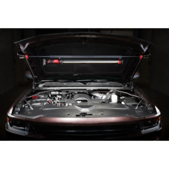 Bis zu 8 Stunden Leuchtzeit auf der niedrigsten Stufe mit einem M12™-REDLITHIUM™-4,0-Ah-Akku Spannweite 119 cm bis 196 cm Leuchten-Schutzrohr aus Polycarbonat Befestigungshaken zur sicheren Montage Gummierter Griff für maximalen Halt MILWAUKEE®-FINISHGUARD™-Haken schützen die Kontaktstellen mit der Motorhaube und verhindern so Kratzer TRUEVIEW™ – hocheffiziente Beleuchtungslösung Zwei Leuchtstufen mit 1350 und 600 Lumen für optimale Beleuchtung und maximale Laufzeit Leuchte vertikal rotierbar und abnehmbar für bestmögliche Ausleuchtung Gummierter Griff für maximalen Halt MILWAUKEE®’s FINISHGUARD™ Haken schützen die Kontaktstellen an der Motorhaube und verhindern so Kratzer Edelstahl-Haken zum Aufhängen Stabiler Rahmen aus hochwertigem Flugzeug-Aluminium für maximale Robustheit Resistent gegen Staub und Spritzwasser (Schutzklasse IP 54) 100 % systemkompatibel mit dem MILWAUKEE® M12™-Produktprogramm
