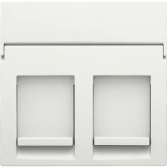 Abdeckung für 2 RJ Ausgänge, flache Ausführung. Die Abdeckung hat ein transparentes Textfeld, in das Sie leicht Text oder Symbole einfügen können. Farbausführung: white.