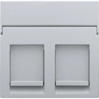 Abdeckung für 2 RJ Ausgänge, flache Ausführung. Die Abdeckung hat ein transparentes Textfeld, in das Sie leicht Text oder Symbole einfügen können. Farbausführung: sterling coated.