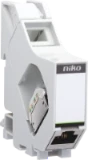 Zusammenstellung Wandsteckdose (Sockel und Abdeckung) mit 2 RJ45 Anschlusspunkten STP Kat. 5E, PoE++ ready für die Herstellung einer Netzwerkverbindung mit 2 Geräten für Telefonie, Ethernet , IP , PoE oder Internetanwendungen. Die Wandsteckdose wird in Sternkonfiguration am Zentralanschlusskasten mithilfe eines Kabels desselben Leistungstyps angeschlossen. Die Schutzfolie sorgt für eine störsicherere Verbindung. Die Schutzfolie sorgt für eine störsicherere Verbindung. Die Innenabmessungen des Sockels betragen 45 x 45 mm und die Außenabmessungen 71 x 71 mm und er ist mit Schraubbefestigung ausgestattet. Um sowohl Daten als auch Strom über den Anschluss zu transportieren, ist ein PoE Adapter erforderlich. Ein PoE Adapter kann sowohl ein PoE Injektor als auch ein PoE Splitter sein. Farbausführung: white. Dieser Artikel ist durch mindestens ein Patent (Anmeldung) geschützt. Weitere Informationen zu Patenten finden Sie auf www.niko.eu/innovation.