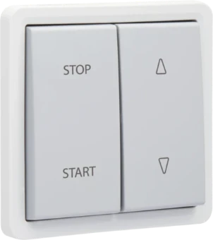 Dieser Rolllädenschalter ist elektrisch getrennt und mit zwei Tasten zum Schalten des Elektromotors in beide Richtungen ausgestattet. Auf der linken Taste steht oben der Aufdruck „Stopp“ und unten „Start“. Auf der rechten Taste ist oben ein Pfeil nach oben und unten ein Pfeil nach unten angebracht. Der Schalter wird in einer spritzwassergeschützten Montagedose montiert. Die gesamte Einheit ist spritzwassergeschützt, wodurch sie sich äußerst gut für einen Gebrauch in Feuchträumen und ammoniakreiche Umgebungen eignet. Farbkombination: hellgrau mit dunkelgrauem Taster.