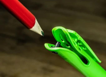 Door de ingenieuze klemfunctie is het houten potlood altijd bij de hand. U concentreert zich op uw werk en vindt uw potlood zonder te kijken.