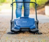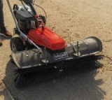 Veegmachine sc2200pe van Scheppach, inclusief verzamelcontainer en sneeuwschuiver.bijzondere kenmerken: snelheid van de borstel te verstellen in verschillende standen krachtige 4-takt benzinemotor met 4800 watt / 6,5 hp afzonderlijk koppelbare wielaandrijving in hoogte verstelbare en zwenkbare borstel in hoogte verstelbare handgreep 3 voorwaarste standen en 1 achterwaartse stand inclusief grote verzamelcontainer voor het oppikken van goederen inclusief sneeuwschuiver (105 cm lang) voor gebruik in de winter 3-standen bedieningshendel (motorstop / snelheid / choke) electro startfunctie en kabelstarter