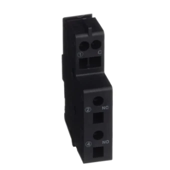 Het is één standaard hulpcontact dat twee externe statusinformatie over de circuitonderbreker geeft. Het wordt gebruikt op Compact NSXm- en PowerPact B-apparaten. Het UIT-contact (open/gesloten) geeft de stand van de hoofdcontacten van de stroomonderbreker aan. Het SD-contact (tripindicatie) geeft aan of de stroomonderbreker is omgeslagen. Er is één hulpcontactmodel voor OF- en SD-informatie, afhankelijk van waar deze in het apparaat is gemonteerd. Dit hulpcontact is een contact van het type omschakeling met 1 normaal open contact en 1 normaal gesloten contact. De nominale stroom is 5A en de minimumbelasting is 2mA bij 17 VDC. De gebruikscategorieën zijn AC12/AC13/DC12/DC13/DC14. Compact NSXm beschikt over 2 hulpcontacten, waarvan de aanwezigheid aan de voorzijde zichtbaar is via groene vlaggen. Het voldoet aan de IEC 60947-5-1-norm.