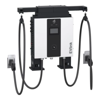 Dit EVlink Pro DC product is een snel oplaadstation voor alle elektrische voertuigen die voldoen aan de IEC61851-1 ed.3- en IEC61851-23-normen. Dit oplaadstation is wandgemonteerd, maar kan ook op de vloer worden bevestigd met behulp van een voetstuk dat afzonderlijk moet worden besteld. De IP-beschermingsgraad is IP55. De IK-beschermingsgraad is IK10 en IK08 voor aanraakscherm. De bedrijfstemperatuur ligt tussen -30°C en 55°C en wordt verlaagd vanaf 55°C. De uitgang is twee a 5m bevestigde kabels met CCS2 voertuigconnectoren aan elk uiteinde, gekoppeld aan kabelbeheeroplossing. Het nominale uitgangsvermogen is 60kW. De lader wordt geleverd in driefasig (L1+L2+L3+N+PE). De nominale laadstroom is 96A onder 380VAC tot 415VAC +/- 10% met een 50 frequentie. Het kan gebruikt worden met een TN-S / TNC-S of TT aardingssysteem. Het is ook IT compatibel met een extra scheidingstransformer op de voeding. Het oplaadstation is gemakkelijk te installeren en vereist geen zware apparatuur. Het kan in