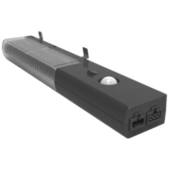 Deze multi-fixatie LED lamp zonder stopcontact, met ingebouwde schakelaar en aanwezigheidsdetector heeft een stroomverbruik van 10 W. De nominale bedrijfsspanning is 120/230 V AC 50/60 Hz. De lichtsterkte van het licht is 640 lm, de lichttemperatuur is 4000 K en de levensduur van de LED is 25000 uur. De behuizing is gemaakt van UL94 V-0 kunststof, de lamp heeft een IP20 weerstand tegen water en stof en is klasse II elektrisch geïsoleerd. De afmetingen van het licht zijn (L) 372 mm x (B) 40 mm x (H) 63 mm. Deze kan worden bevestigd op beugels, DIN-rails of metalen onderdelen met magnetische bevestiging, bevestiging met schroeven of klembevestiging. De bevestigingselementen worden met de lamp meegeleverd. De elektrische aansluiting kan worden gemaakt met een kabelsnelle connector van 3 m of een kabelsnelle connector van 1 m, die niet is meegeleverd. De opslagtemperatuur is -10 °C tot 60 °C en de bedrijfstemperatuur is -16 °C tot 65 °C. De lamp is UL 508 A, IEC 60598, UL 8750, UL 1598, EN