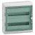 Deze Kaedra weerbestendige behuizing is een opbouwbehuizing voor modulair apparaat. Het bestaat uit 2 rijen van 18 modules van 18mm. Het kan alle soorten modulaire schakelapparatuur huisvesten. De IP beschermingsgraad is IP65. Deze behuizing is geschikt voor waterdichte binnen- of buiteninstallaties. Het is voorzien van een transparante groene deur. De kleur van de behuizing is lichtgrijs (RAL 7035). Het is bedoeld voor installatie in woningen, kleine gebouwen en de industrie. De kabels kunnen via 17 voorgesneden uitsparingen via de boven- of onderkant van de behuizing binnenkomen. Het is voorzien van een achterplaat en een deksel aan de voorkant met inkeping. Het wordt geleverd met een DIN-rail. Het wordt geleverd met 1 klemmenblok met 4 uitgangen en 1 met 32 uitgangen voor een totaal van 36 uitgangen (18x10mm² + 18x16mm²). In het product is ook een markeringskit inbegrepen. De elektrische isolatieklasse is klasse II (dubbel geïsoleerd). De overspanningscategorie is klasse II. Het ged
