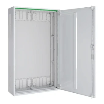 Deze PrismaSeT XL behuizing is een lege wandgemonteerde behuizing. Deze metalen kast is ontworpen om 2 velden van 6 rijen van 12 modules van 18mm te installeren. Het kan alle types van modulaire schakeluitrustingen omvatten. Dit omhulsel is bestemd voor installatie binnen. De IP-beschermingsgraad is IP44. Het is voorzien van een volle deur. De kleur van de kast, de afdekplaat en de deur is wit (RAL 9016). Het kan zij aan zij of op elkaar worden geplaatst. Deze behuizing is bedoeld voor woningen en tertiaire sectoren. De kabels kunnen via de boven- of onderzijde van het omhulsel worden ingevoerd. De elektrische isolatieklasse is klasse II (dubbel geïsoleerd). De ingangsstroom is tot 400A. Dit product voldoet aan de norm IEC 61439, DIN VDE 0603, DIN EN 62208 De totale afmetingen zijn (B) 550mm x (H) 950mm x (D) 210mm. De behuizing en de deur zijn gemaakt van gepoedercoat staal. De IK-beschermingsgraad is IK10.