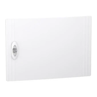 Deze Prismaset XS-deur is een volle deur. Het is ontworpen om te voldoen aan een omhulsel met 1 rij van 18 modules van 18mm. De IP-beschermingsgraad is IP40. De deur is gemaakt van technoplastic. De kleur is wit (RAL 9003). De deur is bedoeld in residentiële of tertiaire sectoren. De deur kan worden geïnstalleerd op een verzonken of oppervlaktebehuizing. het kan aan de rechter- of linkerzijde van het omhulsel worden gemonteerd en geopend. De totale afmetingen zijn (B) 426mm x (H) 300mm x (D) 20mm. De deur is gemaakt van technoplastic. De weerstand van het kunststof tegen vlammen en abnormale warmte is 650 °C. De IK-beschermingsgraad is IK09. De bedrijfstemperatuur is -25°C tot 60°C.