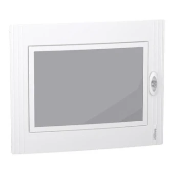 Dit Prismaset XS product is een doorzichtige deur voor de behuizing. Het is ontworpen om te voldoen aan een omhulsel met 2 rijen van 24 modules van 18mm. De IP-beschermingsgraad is IP40. De deur is samengesteld uit een rand in staal met een kleurloos glas. De kleur van de rand is wit (RAL 9003). Het is bedoeld voor nieuwe of gerenoveerde installatie in residentiële en kleine gebouwen. De deur kan worden geïnstalleerd op een verzonken of oppervlaktebehuizing. het kan aan de rechter- of linkerzijde van het omhulsel worden gemonteerd en geopend. Het identificatienummer van de vergrendelingssleutel moet worden vermeld. De totale afmetingen zijn (B) 550mm x (H) 450mm x (D) 20mm. Het gewicht is 3.570kg. De IK-beschermingsgraad is IK09. De bedrijfstemperatuur is -25°C tot 60°C.