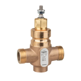 De V241 is een extern 2-weg bronzen bolkraan met schroefdraad en roestvrijstalen afwerking die is ontworpen voor veeleisende verwarmings- en koelingstoepassingen. De klep maakt gebruik van een kroonstekker voor nauwkeurige vloeistofregeling met een zeer hoge afstelbaarheid. Gepolijste Roestvrijstalen stoelen zorgen voor een hoge differentieeldruk en een lage lekkage. De kroonstekker biedt een nauwkeurige vloeistofregeling met een afstelbaarheid van 5:1 en is van een zelfreinigend ontwerp voor een betrouwbare werking. Maten klep: DN15, G Externe draad, Stroomcapaciteit, Kvs: 1 m³/h. Constructie en flens tot een PN16-drukklasse. ΔΡm max. 6 kPa. EPDM-afdichtingen zorgen voor een bedrijfstemperatuurbereik van -2 °C tot + 12 °C, de zachte dichting zorgt voor een dichte afsluiting zonder lekkage. 2 mm slag garandeert een hoge regelbaarheid, een gelijk percentage flow-eigenschap zorgt voor een hoge regelbaarheid bij een lage openingsgraad. Voldoet aan Richtlijn 214/68/EE, artikel 4, lid 3, va
