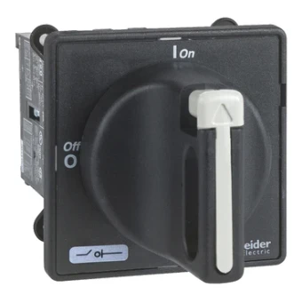 TeSys Vario lastscheider voor deurmontage - 3P - 20A/690V - Voor motorschakelaartoepassingen tot 5.5kW@400V AC-23. Volledige eenheid bestaande uit een schakelaar lichaam VN20, een zwarte hendel met zwarte 60x60mm voorplaat KAD1PZ. Bedoeld voor gebruik bij het loskoppelen van de hoofdschakelaar. Vergrendelbare hendel, voor 3 hangsloten (afzonderlijk te bestellen). Handgreep met centrale bevestiging om op deur te worden gemonteerd, verzekert het IP65 aan de montage. Multi-standaarden gecertificeerd (IEC, UL, CSA), Green Premium-conform (RoHS/REACh).