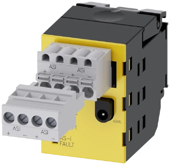 AS-Interface module, 2 safe inputs, black, 4-pole connector with screw terminal and 4-pole connector with spring-type terminal, for front plate mounting AS-Interface module SIRIUS ACT for communication connection of the actuating and signaling elements. Under the brand name SIRIUS ACT, Siemens offers a unique portfolio of pushbuttons and signaling devices with global product approvals in three modern design lines of rugged genuine metal and high-grade plastic.An innovative snap-on concept makes the task of installing a unit so easy that it can be done with one hand and without any special tools. Groove-free holes are adequate as mounting holes since fulltwist prevention is already integrated.Thanks to the high degree of protection throughout, the rugged devices are suitable for use in industry and outdoors. Even cleaning with a high-pressure jet is possible. Neither dust, oils, nor caustic solutions can interfere with reliable operation.As well as standard wiring, the devices can also be connected to the controller via PROFINET, AS-Interface or IO-Link. Doing so will help you to reduce wiring time and effort, minimize error sources and have more flexibility.The graphical Online Configurator provides convenient support when selecting and ordering individual devices, enclosures and labels. Extensive documentation (e.g. manual, 3D data, terminal diagram) is available. Optionally for front-plate mounting with screw/spring-type terminals/insulation piercing method, or enclosure mounting. SIRIUS ACT - Performance in action for control and signalling. Simply mounted, simply strong, simply perfect.