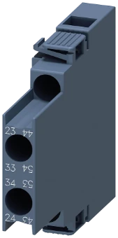 auxiliary switch, lateral, 2 NO, on the left: 43/44, 53/54, on the right: 23/24, 33/34, current path: 1 NO, 1 NO, screw terminal, for contactors 3RT2.1 auxiliary switch SIRIUS 3RH29 for the expansion of auxiliary contacts in the control circuit. 3RH29 auxiliary switches can be laterally mounted onto 3RT2 contactors without tools regardless of their size. The 3RH19/3RH29 auxiliary switches are available as versions for front or lateral mounting, with up to four instantaneous contacts or up to two leading NO and NC contacts. The auxiliary switches can be designed as positively driven contacts in 3RH contactor relays or also as mirror contacts in the case of3RT power contactors. All of them are available with screw terminal and spring-type terminal. Simple, efficient and always up to date - SIRIUS modular system.