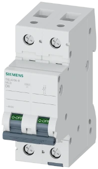 Miniature circuit breaker 400 V 10kA, 2-pole, D, 6A Miniature circuit breaker SENTRON 5SL for fail-safe short-circuit and overload protection for standard applications in residential and non-residential buildings. Assembly and disassembly of the device without tools. Simple wiring of the infeed through the rear busbar. The 5SL miniature circuit breakers are available in 1-, 2-, 3-, 4-pole and 1+N- and 3+N-pole versions and in further special types. The extensive accessories, such as the auxiliary switch, allow the functions to be extended in a wide variety of ways. Simply safe with the protection devices from SENTRON.