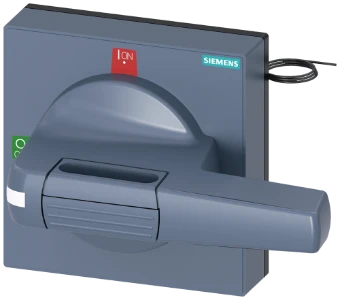 handle with masking plate standard illuminated size 100x 100, for shaft 8x 8, test-0-I, handle size 100mm accessory for 3KD size 3 3KF size 2 and 3 Manual operators for all-round convenient operation of the 3VA molded case circuit breaker. Available as a front, door, and side panel rotary actuator with various locking and interlocking options. The handles are available in standard and EMERGENCY-STOP variants, each with or without an illumination kit. SENTRON 3VA molded case circuit breakers - One system. For all applications.
