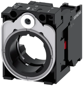 holder, universal, 3-way, plastic/metal, 1 NC, screw terminal Holders SIRIUS ACT for securing modular actuators and indicators Standard: 3-slot holders, 4-slot holders only in conjunction with coordinate switches/selector switches with 4 positions. Under the brand name SIRIUS ACT, Siemens offers a unique portfolio of pushbuttons and signaling devices with global product approvals in three modern design lines of rugged genuine metal and high-grade plastic.An innovative snap-on concept makes the task of installing a unit so easy that it can be done with one hand and without any special tools. Groove-free holes are adequate as mounting holes since full twist prevention is already integrated.Thanks to the high degree of protection throughout, the rugged devices are suitable for use in industry and outdoors. Even cleaning with a high-pressure jet is possible. Neither dust, oils, nor caustic solutions can interfere with reliable operation.As well as standard wiring, the devices can also be connected to the controller via PROFINET, AS-Interface or IO-Link. Doing so willhelp you to reduce wiring time and effort, minimize error sources and have more flexibility.The graphical Online Configurator provides convenient support when selecting and ordering individual devices, enclosures and labels. Extensive documentation (e.g. manual, 3D data, terminal diagram) is available. Versions available: Plastic/metal, with/without modules. SIRIUS ACT - Performance in action for control and signalling. Simply mounted, simply strong, simply perfect.