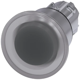 Illuminated mushroom pushbutton, 22 mm, round, metal, shiny, clear, 40 mm, latching, Pull-to-unlatch mechanism Mushroom pushbuttons SIRIUS ACT with large actuator for convenient operation using the whole hand. Under the brand name SIRIUS ACT, Siemens offers a unique portfolio of pushbuttons and signaling devices with global product approvals in three modern design lines of rugged genuine metal and high-grade plastic.An innovative snap-on concept makes the task of installing a unit so easy that it can be done with one hand and without any special tools. Groove-free holes are adequate as mounting holes since full twist prevention is already integrated.Thanks to the high degree of protection throughout, the rugged devices are suitable for use in industry and outdoors. Even cleaning with a high-pressure jet is possible. Neither dust, oils, nor caustic solutions can interfere with reliable operation.As well as standard wiring, the devices can also be connected to the controller via PROFINET, AS-Interface or IO-Link. Doing so will help you to reduce wiring time and effort, minimize error sources and have more flexibility.The graphical Online Configurator provides convenient support when selecting and ordering individual devices, enclosures and labels. Extensive documentation (e.g. manual, 3D data, terminal diagram) is available. Versions available: 30/40/60 mm mushroom diameter, several colors, illuminated/non-illuminated, latching/momentary contact operation, pull-to-unlatch/rotate-to-unlatch mechanism. Note: Single device, please order holders and modules separately. SIRIUS ACT - Performance in action for control and signalling. Simply mounted, simply strong, simply perfect.