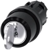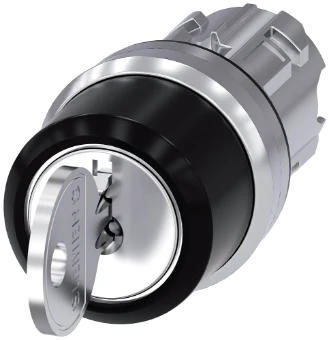 RONIS key-operated switch, 22 mm, round, metal, shiny, lock number SB30, with 2 keys, 3 switch positions I-O-II, latching, actuating angle 2x45°, 10:30h/12h/13:30h, key removal O, possible special locks: SB31, 421, 455 Key-operated switches SIRIUS ACT for meeting higher demands for access security. Under the brand name SIRIUS ACT, Siemens offers a unique portfolio of pushbuttons and signaling devices with global product approvals in three modern design lines of rugged genuine metal and high-grade plastic.An innovative snap-on concept makes the task of installing a unit so easy that it can be done with one hand and without any special tools. Groove-free holes are adequate as mounting holes since full twist prevention isalready integrated.Thanks to the high degree of protection throughout, the rugged devices are suitable for use in industry and outdoors. Even cleaning with a high-pressure jet is possible. Neither dust, oils, nor caustic solutions can interfere with reliable operation.As well as standard wiring, the devices can also be connected to the controller via PROFINET, AS-Interface or IO-Link. Doing so will help you to reduce wiring time and effort, minimize error sources and have more flexibility.The graphical Online Configurator provides convenient support when selecting and ordering individual devices, enclosures and labels. Extensive documentation (e.g. manual, 3D data, terminal diagram) is available. Versions available: Various locking systems (Siemens, C; Siemens, B; RONIS, OMR), 2/3 switch positions, latching/momentary-contact operation, various key removal positions. Note: Single device, please order holders and modules separately. SIRIUS ACT - Performance in action for control and signalling. Simply mounted, simply strong, simply perfect.