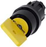 Siemens keyswitch, C, 22 mm, round, plastic, lock number LSG1, with 2 keys, 2 switch positions O-I, latching, actuating angle 90°, 10:30h/13:30h, key removal O+I Key-operated switches SIRIUS ACT for meeting higher demands for access security. Under the brand name SIRIUS ACT, Siemens offers a unique portfolio of pushbuttons and signaling devices with global product approvals in three modern design lines of rugged genuine metal and high-grade plastic.An innovative snap-on concept makes the task of installing a unit so easy that it can be done with one hand and without any special tools. Groove-free holes are adequate as mounting holes since full twist prevention isalready integrated.Thanks to the high degree of protection throughout, the rugged devices are suitable for use in industry and outdoors. Even cleaning with a high-pressure jet is possible. Neither dust, oils, nor caustic solutions can interfere with reliable operation.As well as standard wiring, the devices can also be connected to the controller via PROFINET, AS-Interface or IO-Link. Doing so will help you to reduce wiring time and effort, minimize error sources and have more flexibility.The graphical Online Configurator provides convenient support when selecting and ordering individual devices, enclosures and labels. Extensive documentation (e.g. manual, 3D data, terminal diagram) is available. Versions available: Various locking systems (Siemens, C; Siemens, B; RONIS, OMR), 2/3 switch positions, latching/momentary-contact operation, various key removal positions. Note: Single device, please order holders and modules separately. SIRIUS ACT - Performance in action for control and signalling. Simply mounted, simply strong, simply perfect.
