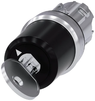 Siemens keyswitch, C, 22 mm, round, metal, shiny, lock number LSG1, with 2 keys, 2 switch positions O-I, latching, actuating angle 90°, 10:30h/13:30h, key removal O+I Key-operated switches SIRIUS ACT for meeting higher demands for access security. Under the brand name SIRIUS ACT, Siemens offers a unique portfolio of pushbuttons and signaling devices with global product approvals in three modern design lines of rugged genuine metal and high-grade plastic.An innovative snap-on concept makes the task of installing a unit so easy that it can be done with one hand and without any special tools. Groove-free holes are adequate as mounting holes since full twist prevention isalready integrated.Thanks to the high degree of protection throughout, the rugged devices are suitable for use in industry and outdoors. Even cleaning with a high-pressure jet is possible. Neither dust, oils, nor caustic solutions can interfere with reliable operation.As well as standard wiring, the devices can also be connected to the controller via PROFINET, AS-Interface or IO-Link. Doing so will help you to reduce wiring time and effort, minimize error sources and have more flexibility.The graphical Online Configurator provides convenient support when selecting and ordering individual devices, enclosures and labels. Extensive documentation (e.g. manual, 3D data, terminal diagram) is available. Versions available: Various locking systems (Siemens, C; Siemens, B; RONIS, OMR), 2/3 switch positions, latching/momentary-contact operation, various key removal positions. Note: Single device, please order holders and modules separately. SIRIUS ACT - Performance in action for control and signalling. Simply mounted, simply strong, simply perfect.