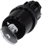 Siemens keyswitch, C, 22 mm, round, metal, shiny, lock number LSG1, with 2 keys, 2 switch positions OI, momentary contact type, actuating angle 45°, 10:30h/12h, key removal O Key-operated switches SIRIUS ACT for meeting higher demands for access security. Under the brand name SIRIUS ACT, Siemens offers a unique portfolio of pushbuttons and signaling devices with global product approvals in three modern design lines of rugged genuine metal and high-grade plastic.An innovative snap-on concept makes the task of installing a unit so easy that it can be done with one hand and without any special tools. Groove-free holes are adequate as mounting holes since full twist prevention isalready integrated.Thanks to the high degree of protection throughout, the rugged devices are suitable for use in industry and outdoors. Even cleaning with a high-pressure jet is possible. Neither dust, oils, nor caustic solutions can interfere with reliable operation.As well as standard wiring, the devices can also be connected to the controller via PROFINET, AS-Interface or IO-Link. Doing so will help you to reduce wiring time and effort, minimize error sources and have more flexibility.The graphical Online Configurator provides convenient support when selecting and ordering individual devices, enclosures and labels. Extensive documentation (e.g. manual, 3D data, terminal diagram) is available. Versions available: Various locking systems (Siemens, C; Siemens, B; RONIS, OMR), 2/3 switch positions, latching/momentary-contact operation, various key removal positions. Note: Single device, please order holders and modules separately. SIRIUS ACT - Performance in action for control and signalling. Simply mounted, simply strong, simply perfect.