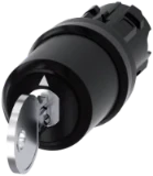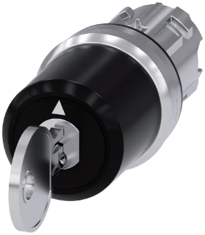 Siemens keyswitch, C, with key monitoring, 22 mm, round, metal shiny, lock number S-10-CG with 2 keys, 3 switch positions I-O-II, latching, actuating angle 2x45°, 10:30h/12h/13:30h, key removal/ejection in O Key-operated switches SIRIUS ACT for meeting higher demands for access security. Under the brand name SIRIUS ACT, Siemens offers a unique portfolio of pushbuttons and signaling devices with global product approvals in three modern design lines of rugged genuine metal and high-grade plastic.An innovative snap-on concept makes the task of installing a unit so easy that it can be done with one hand and without any special tools. Groove-free holes are adequate as mounting holes since full twist prevention isalready integrated.Thanks to the high degree of protection throughout, the rugged devices are suitable for use in industry and outdoors. Even cleaning with a high-pressure jet is possible. Neither dust, oils, nor caustic solutions can interfere with reliable operation.As well as standard wiring, the devices can also be connected to the controller via PROFINET, AS-Interface or IO-Link. Doing so will help you to reduce wiring time and effort, minimize error sources and have more flexibility.The graphical Online Configurator provides convenient support when selecting and ordering individual devices, enclosures and labels. Extensive documentation (e.g. manual, 3D data, terminal diagram) is available. Versions available: Various locking systems (Siemens, C; Siemens, B; RONIS, OMR), 2/3 switch positions, latching/momentary-contact operation, various key removal positions. Note: Single device, please order holders and modules separately. SIRIUS ACT - Performance in action for control and signalling. Simply mounted, simply strong, simply perfect.
