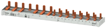 compact Pin Busbar, 10mm2 connection: 3p/N (RCCB N-right) 1x RCCB 4-pole+1x MCB 3-pole+ 7x compact device 1MW touch protected 14 MW cuttable Pin busbar SENTRON 5ST3 as additional components for residual current devices and miniature circuit breakers. These additional components can be mounted universally. They are easy and convenient to install and connect. Thanks to the standard touch protection, safety is reliably ensured during installation. Optimized technology for your safety - only from Siemens.