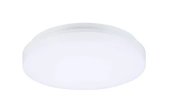 Ceiling / wall round luminaire with integrated LED. Perfect solution for corridors, circulation areas or bathrooms. Even and uniform light in a slim but robust design. Power 18 W, lumen output 1900 lumens, lumen efficacy 105 lm/W, dual color temperature (3000K/4000K). Supplied with non dimmable driver and bulilt in motion sensor. Default settings as Stand-by time 0s, Stand-by dim level 15%, Daylight 10lux, Hold-time 60s, Sensitivity 100%. Mains Voltage 220-240V~. Body Size: 280mm diameter x 53mm height. IK07, IP54 Protection rating. PC Polycarbonate Opal diffuser.Low maintenance with 65000 hours LED lifespan expectancy. Warranty: 3 years.