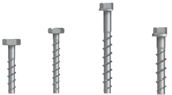 Stalen schroef die voorzien zijn van geharde tanden waardoor na voorboren een eigen schroefdraad gesneden wordt in beton.