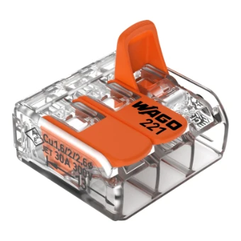 Verbindungsklemme mit Hebeln für alle Leiterarten max. 6 mm² transpare