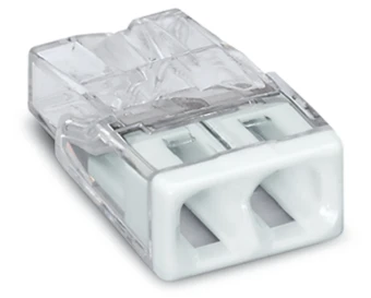 COMPACT-Verbindungsdosenklemme für eindrähtige Leiter max. 2,5 mm² 2 Leiter Gehäusefarbe transparent Deckelfarbe weiß Umgebungstemperatur max. 6