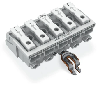 Leuchtenanschlussklemme Drücker extern mit abgewinkeltem PE-Rastkontak