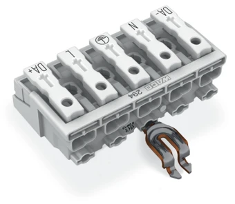 Leuchtenanschlussklemme Drücker extern mit abgewinkeltem PE-Rastkontak
